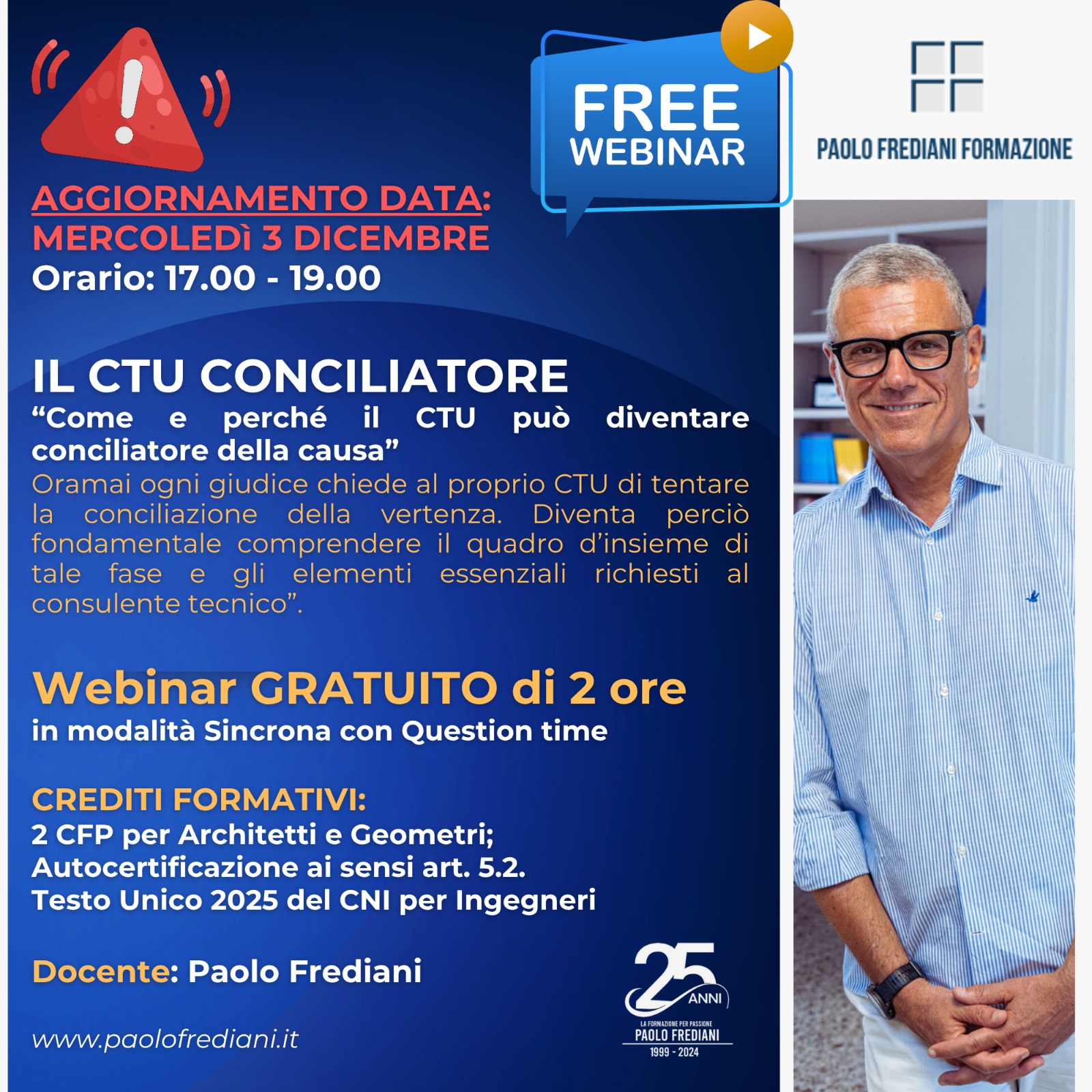Iscrizione obbligatoria sul sito www.paolofrediani.it